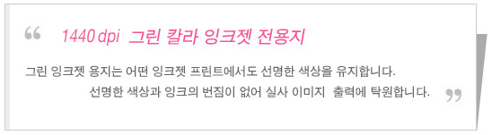 1. 1440dpiÀÇ ¹Ì¼¼ÇÑ Ãâ·ÂÀ» Ç¥ÇöÇÏ´Â Àü¿ëÁö·Î ¶Ù¾î³­ ¹ß»öµµ¿Í °íÈ­ÁúÀÇ Àμ⸦ ½ÇÇöÇÏ¸ç ¶Ñ·ÇÇÏ°í ¼±¸íÇÑ ÃÖ»óÀÇ ±×·¡ÇÈ Ä®¶ó Ãâ·Â È¿°ú¸¦ º¸½Ç ¼ö ÀÖÀ¸½Ê´Ï´Ù.